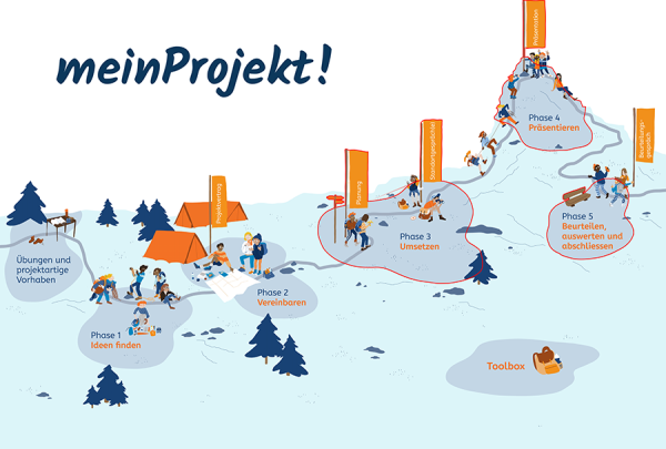 Somit springen wir in die letzte Phase des Projektlehrmittels «meinProjekt!». Die fünfte Phase trägt den Namen «Beurteilen, auswerten und abschliessen». Hierfür gibt es verschiedene Instrumente, welche in für die Nachbearbeitung behilflich sein können. Mit dem «Daumen hoch-Blatt» können zum Abschluss nochmals Aussenstehende das Projekt beurteilen. Idealerweise können hier dieselben Personen befragt werden wie beim «Ampelblatt» in der zweiten Phase des Projekts [siehe «meinProjekt!»-Blog (2/3)].