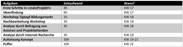 So sieht mein mit der ALPEN-Methode eruierter Arbeitsplan aus: