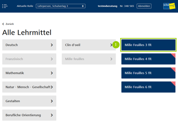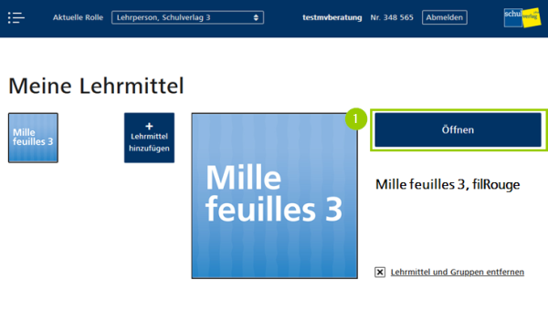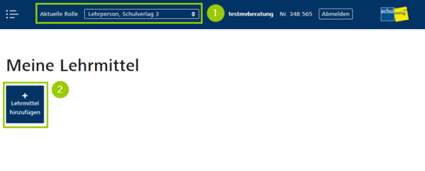 ausgewählt ist. Klick auf «Lehrmittel hinzufügen»