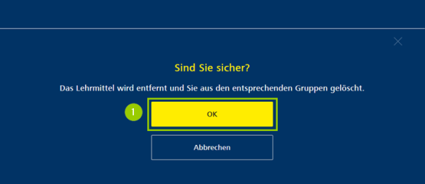 Möchtest du nur das Lehrmittel entfernen, ohne die Gruppe zu löschen? Lade dazu eine weiter Lehrperson zu der/den Gruppe/n ein und entferne dich im Vorfeld aus allen Gruppen. Lösch erst anschliessend das Lehrmittel aus deinem Cockpit.