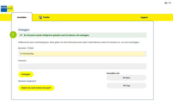 . Du kannst dich mit dem Benutzernamen oder der E-Mail-Adresse, sowie dem soeben neu gesetzten Passwort anmelden.
