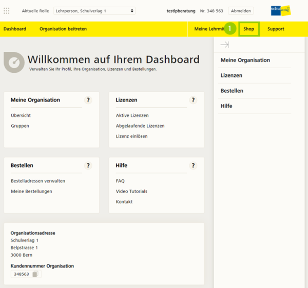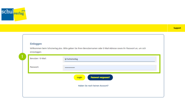 Öffne unseren Shop unter shop.schulverlag.ch  und klicke auf «Anmelden»