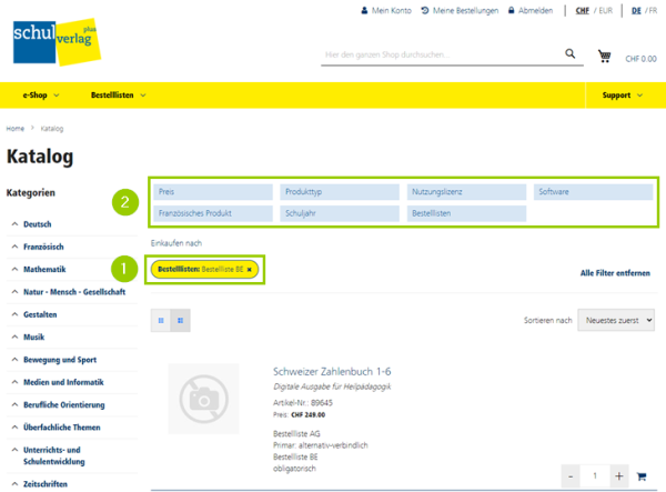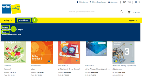 Du hast die Möglichkeit die Produkte nach den Bestelllisten vom Kanton Bern oder Aargau einzublenden. Klicke dazu in der Navigation auf «Bestelllisten» und wähle den gewünschten Kanton an