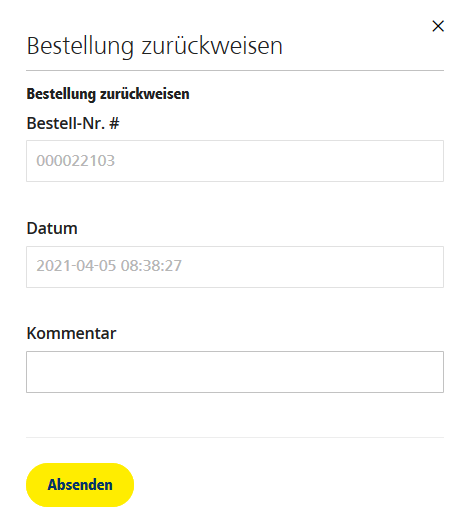 . Du kannst auch eine Teilbestellung ablehnen. Klicke dazu auf «zurückweisen»  .