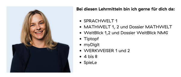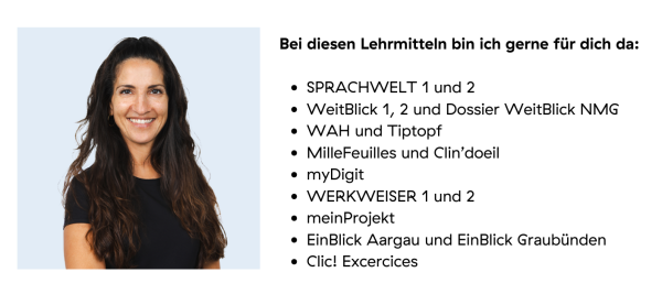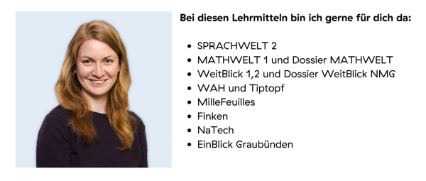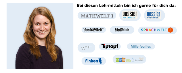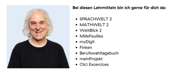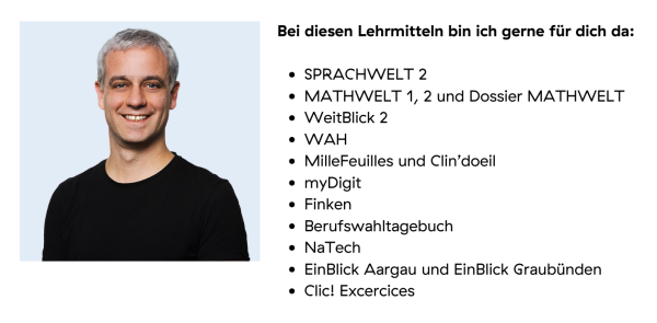 Gerne beraten wir dich zu unseren Lehrmitteln. Hast du Fragen zum Aufbau eines unserer Lehrmittel? Benötigst du Unterstützung bei der Anwendung und Umsetzung im Unterricht? Melde dich bei uns.